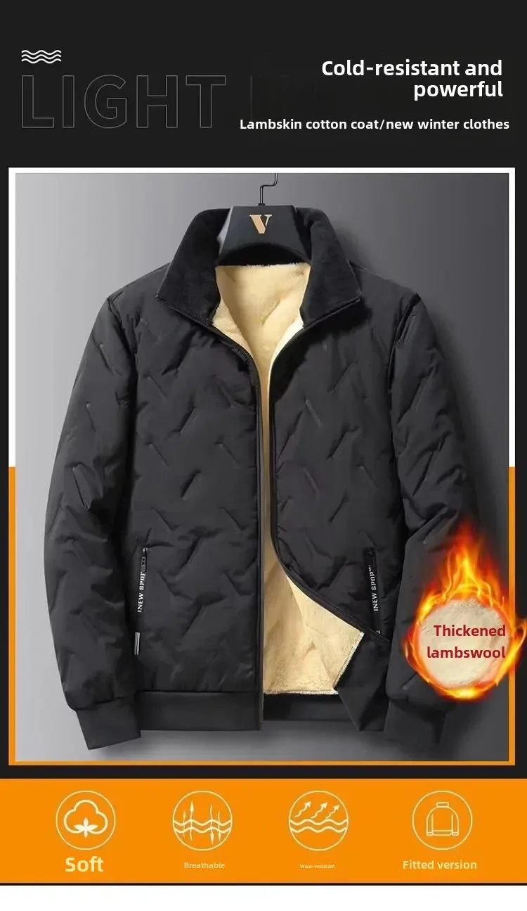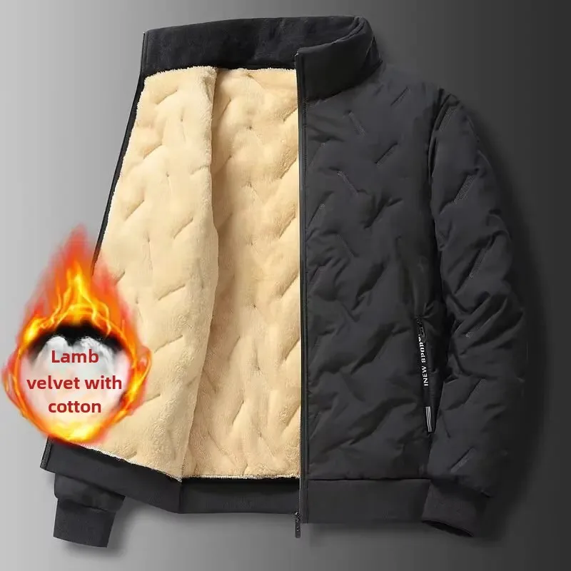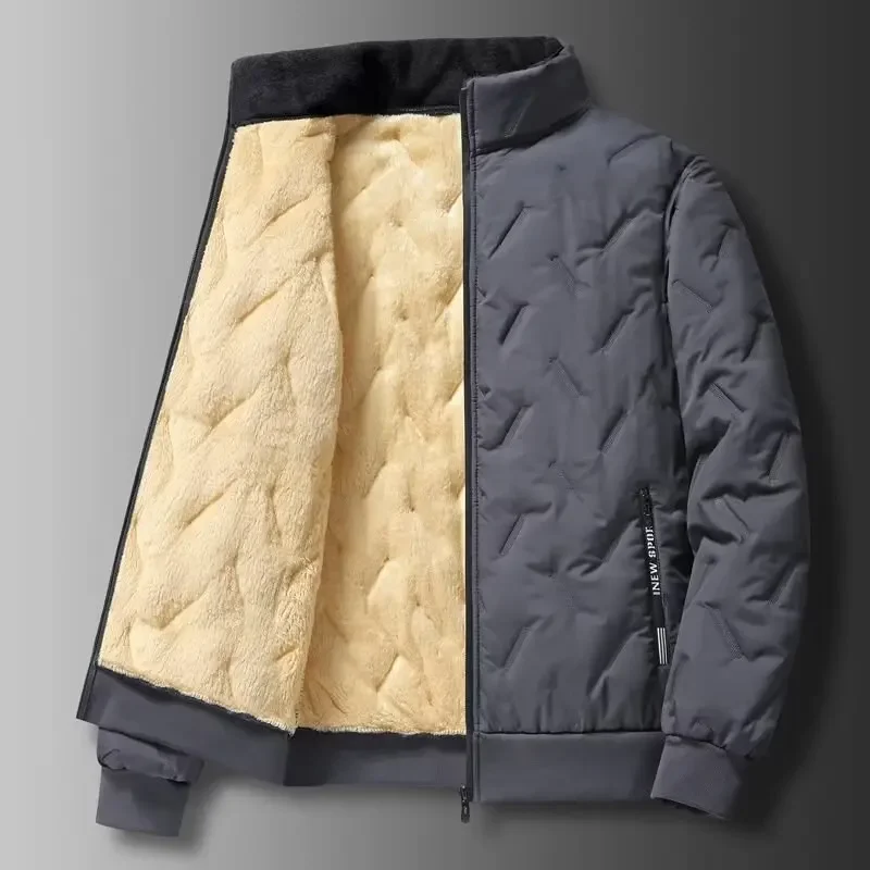 جاكيت رجالي عصري ومتنوع الاستخدامات، بتصميم أنيق مع خطوط منقوشة وطية صدر راقية. يتميز بجيوب بسحاب للحفاظ على الأغراض الشخصية بأمان، وحافة مرنة توفر ملاءمة مريحة. البطانية القطيفة السميكة تضيف دفئًا استثنائيًا، مما يجعله مناسبًا للمناسبات اليومية والرسمية على حد سواء.