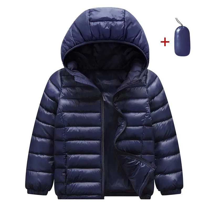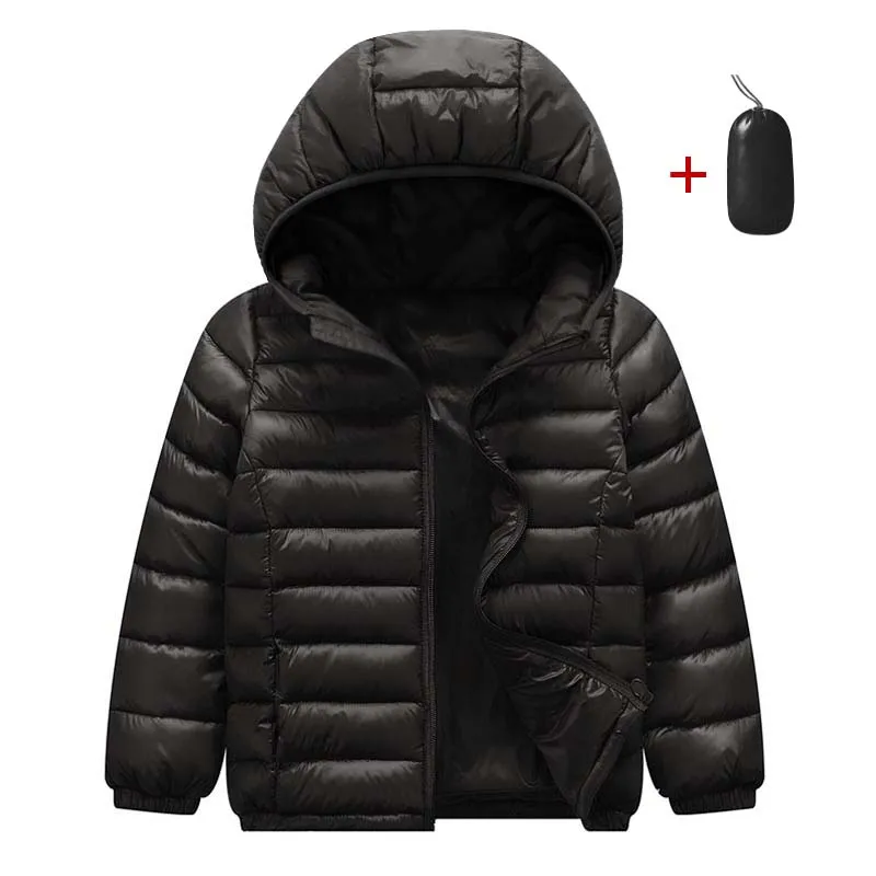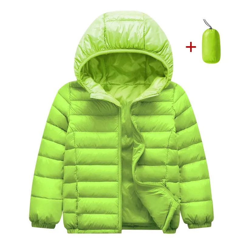 جاكيت أطفال من القطن الخفيف - جاكيت بغطاء رأس أحادي اللون لفصل الخريف والشتاء للأطفال